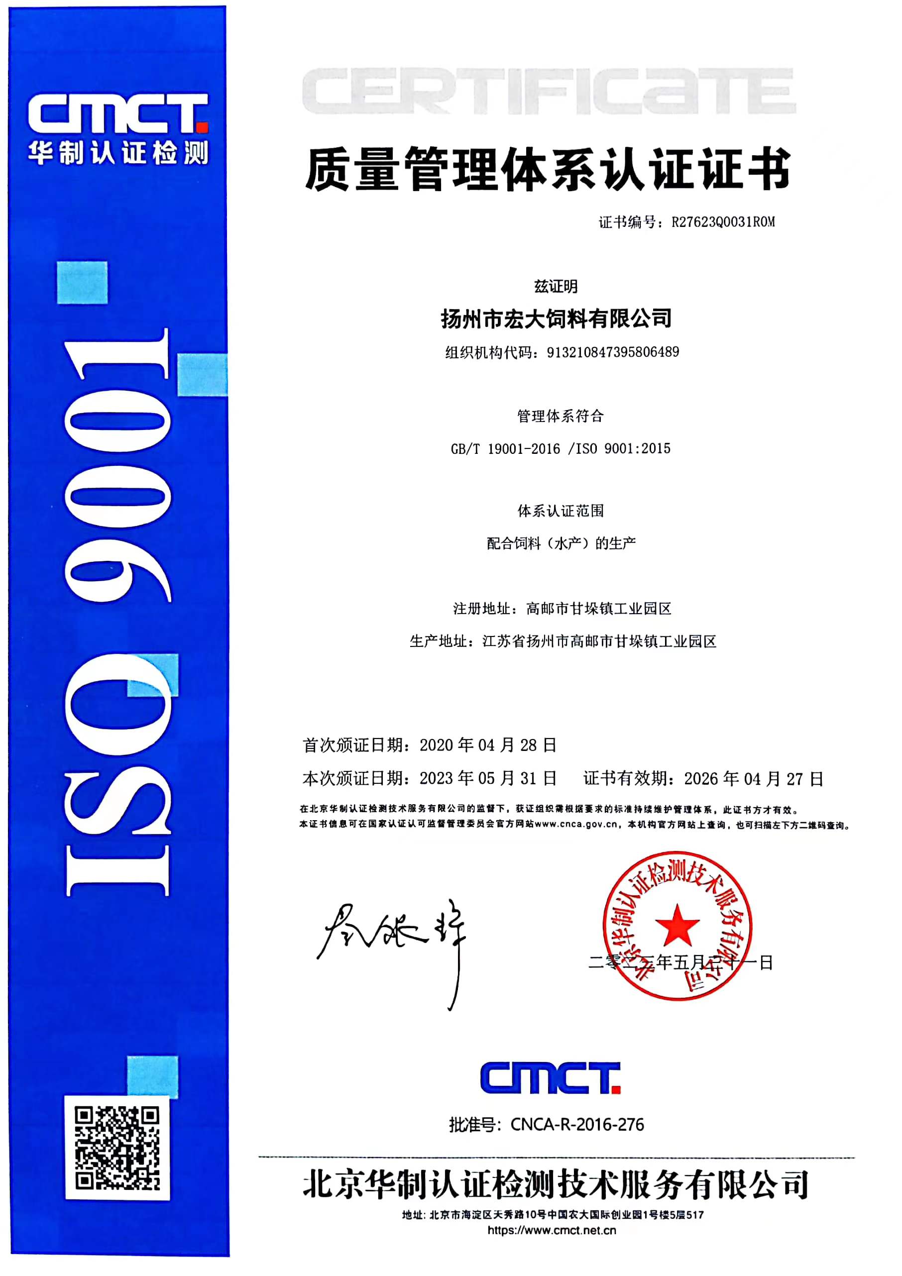 揚州市宏大飼料有限公司 揚州市宏大飼料有限公司是一家集科研與生產(chǎn)為一體的大型民營企業(yè),座落在魚米之鄉(xiāng)高郵東郊,傍依郵興公路、澄子河,水陸交通便捷,于2002年建成投產(chǎn),占地面積60畝,固定投資1.5億元?,F(xiàn)有7條生產(chǎn)線,其中時產(chǎn)15噸高檔水產(chǎn)膨化生產(chǎn)線2條,均采用國內(nèi)先進的真空后噴涂技術(shù)和低溫烘干技術(shù)(飼料內(nèi)的各種營養(yǎng)不受破損)、臺灣宜大高檔蝦料生產(chǎn)線2條和魚飼料生產(chǎn)線3條。
